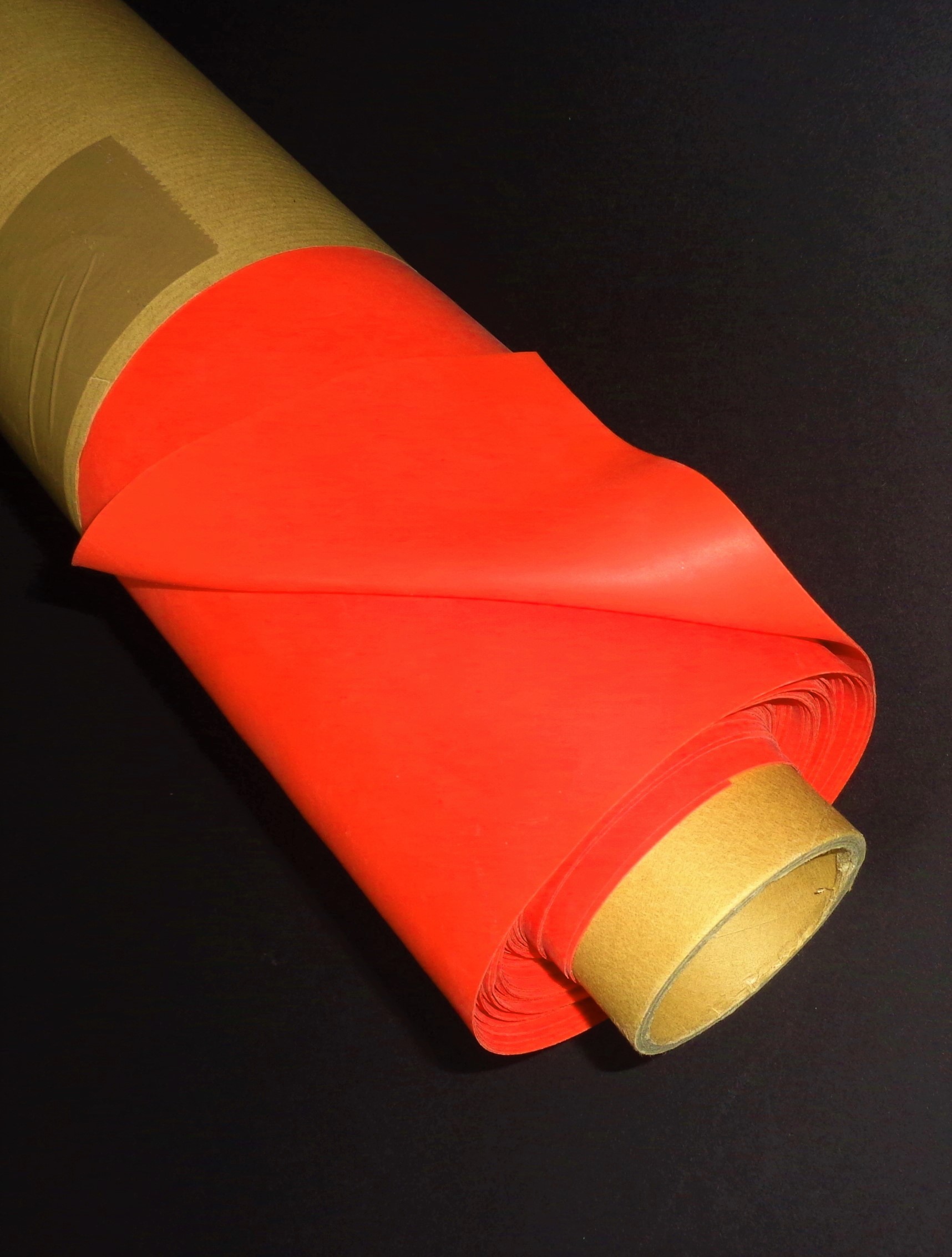 Lichtrode Latex-rubber op rol van 10 meter, lichthelder-fel rood, dikte: 0.50mm, 1mtr. breed, LPM